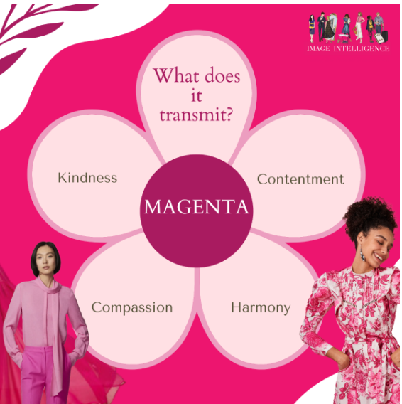 We can wear Magenta year-round and embrace its qualities as a color, or a tool, to promote self-expression, send a message, and dress as an individual. Magenta is full of positive meaning and transmits contentment, harmony, compassion, and kindness.