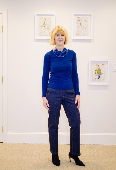 Jean are a workhorse piece in any capsule collection. They go with virtually anything and can be dressed up and down for multiple occasions both professionally and personally. The blue crewneck sweater is also a versatile stable that creates a monochromatic look. The necklace adds an element of whimsey to the look.