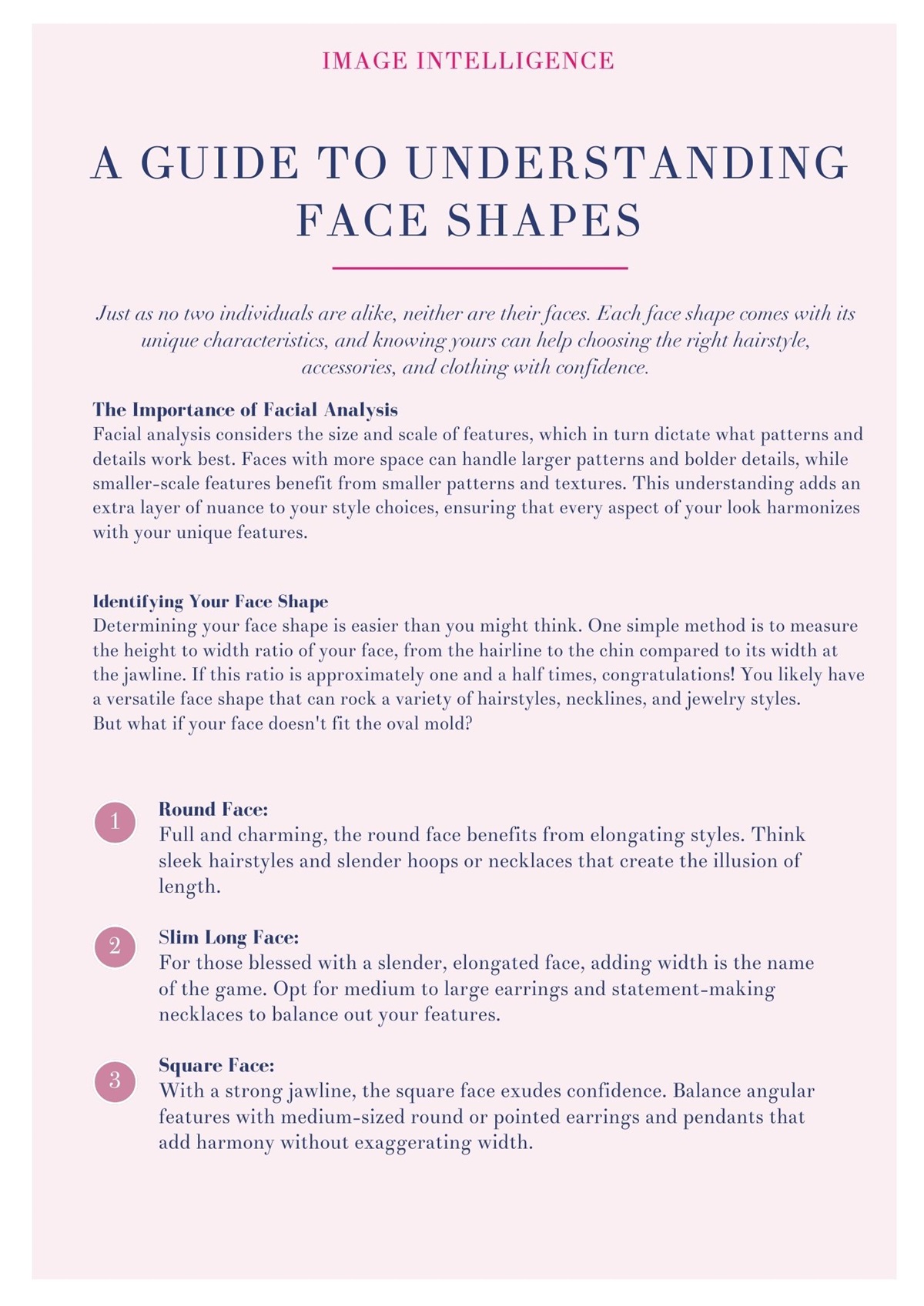 To read more on how to complement your unique face shape read more: How to Flatter Your Face Shape Facial Shape Connections