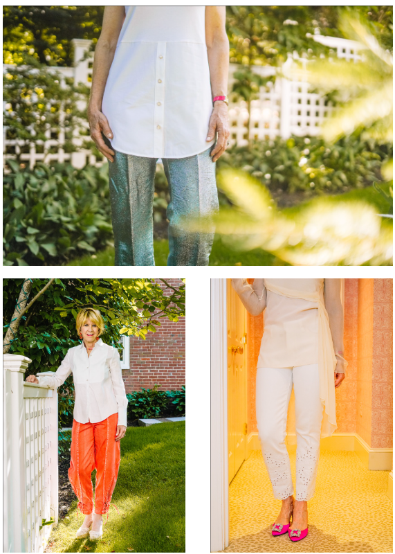 Below are a few of the white shirts I’ve styled with statement pants and colorful shoes.